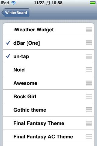 →Themeの中から「WinterBoard-ja」にチェックをいれRespring